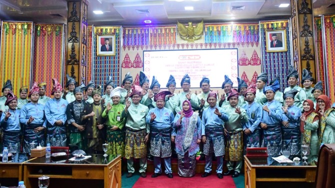 KupasKasus.com, Bengkalis - Bupati Kasmarni dan Wakil Bupati Bagus Santoso mengikuti Sidang Paripurna Istimewa Sempena Hari Jadi ke-512 Bengkalis, di Kantor DPRD Bengkalis. Selasa, 30 Juli 2024.