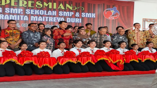 KupasKasus.com, Bengkalis - Bupati Bengkalis Kasmarni meresmikan gedung SMP sekaligus sekolah SMP dan SMK Paramita Maitreya Duri, di Mandau, Minggu, 8 September 2024.