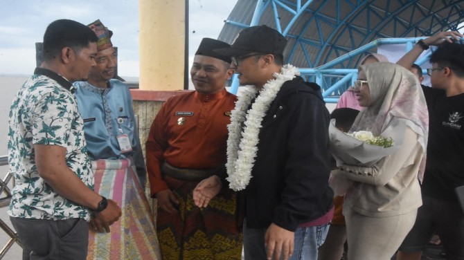 Saat di dermaga, AKBP Budi Setiawan langsung disambut baik Wabup Bagus Santoso dengan pemasangan kalung bunga dilehernya dan diiringi dengan pukulan kompang Al Hidayah yang merupakan binaan Polsek Bengkalis berkolaborasi Dusun Antarsari Desa Wonosari.