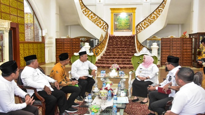 KupasKasus.com, Bengkalis - Ketua MUI Kabupaten Bengkalis terpilih, H Amrizal bersama sejumlah pengurus melakukan silaturahmi dengan Bupati Bengkalis Kasmarni, di Wisma Sri Mahkota, Rabu, 12 Februari 2024.