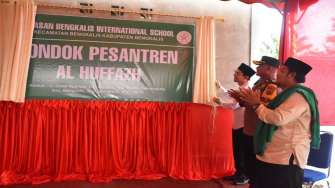 Bupati mengucapkan selamat dan tahniah atas diresmikannya Ponpes Al Huffazh dan terima kasih kepada para ustadz dan ustadzah atas kesungguhan, kepedulian, komitmen dan eksistensinya, untuk ikut berkontribusi dalam memajukan dunia pendidikan di Kabupaten Bengkalis.