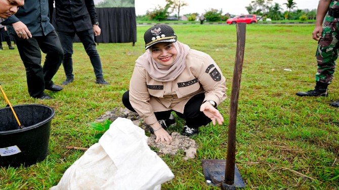 KupasKasus.com, Bengkalis - Bupati Bengkalis Kasmarni, ikuti penanaman 10.000 pohon di Kota Dumai. Kegiatan yang diinisiasi oleh Kapolda Riau tersebut mengusung tema "Melindungi Tuah, Menjaga Marwah".