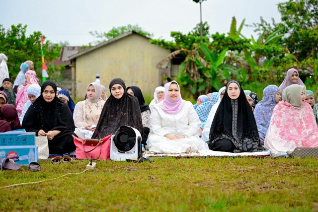 Bupati Bengkalis Kasmarni Laksanakan Shalat Idul Fitri 1446 H/2025 M, di Lapangan Bola Kaki Dusun Sialang Rimbun, Muara Basung
