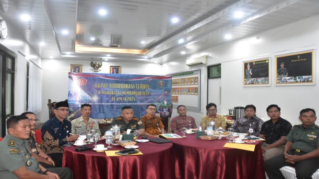 KupasKasus.com, Bengkalis - Bersama Dandim 0303 Bengkalis, Letkol Arh Irvan Nurdin, Bupati Bengkalis Kasmarni, diwakili Staf Ahli Bupati Bidang Kemasyarakatan dan Sumber Daya Manusia (SDM), Johansyah Syafri mengikuti rapat virtual terhadap pelaksanaan TNI Manunggal Membangun Desa (TMMD) ke-124, di Makodim 0303 Bengkalis, Kamis, 24 April 2025.