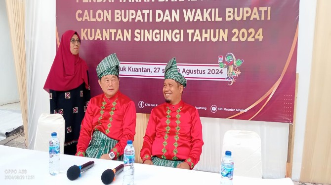 KupasKasus.com, Kuansing - Setelah Paslon Suhardiman Amby-Muklisin mendatangi Kantor KPU guna mendaftar sebagai calon bupati dan Wakil Bupati, dan di lanjutan untuk pasangan kedua untuk pendaftaran Pasangan calon (Paslon) Halim-Sardiono (HS) ikut mendaftar ke KPU Kuansing, pada Kamis (29/8/2024) siang. Dengan Ratusan massa pendukung yang memakai baju merah, paslon HS juga membawa kesenian randai.