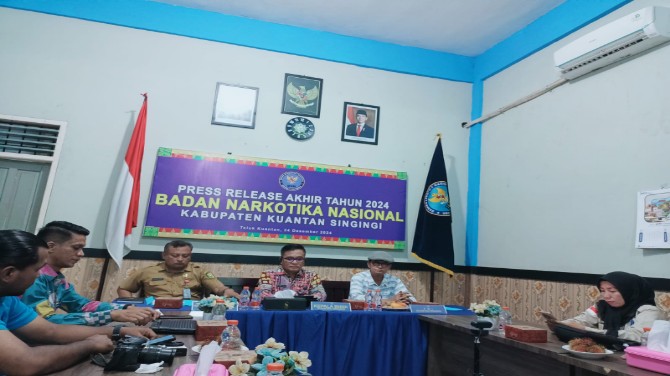 KupasKasus.com, Taluk Kuantan - Badan Narkotika Nasional Kabupaten Kuantan Singingi (BNN K) menggelar Press Release Akhir Tahun 2024 di Kantor BNN Kabupaten Kuantan Singingi, Selasa (24/12/2024).