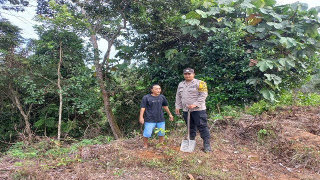 Penanaman bibit pohon ini dipimpin oleh BRIPTU Darwin selaku Bhabinkamtibmas Desa Inuman, bersama BRIPDA Piki, anggota Polsubsektor Inuman. Tak hanya menanam bibit baru, keduanya juga melakukan pengecekan terhadap tanaman-tanaman yang telah ditanam dalam kegiatan sebelumnya, guna memastikan pertumbuhan yang optimal.
