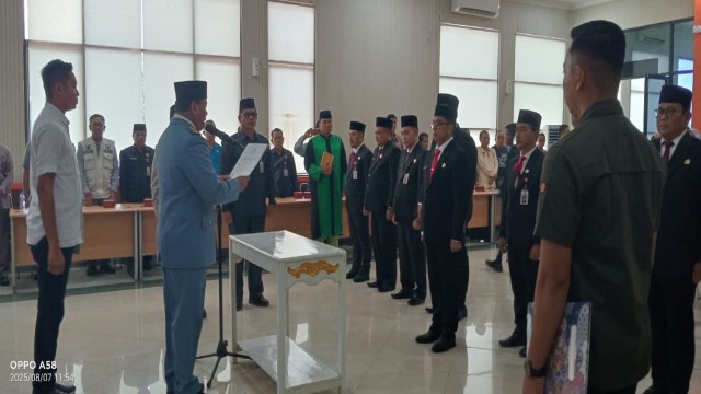 KupasKasus.com, Kuansing - Bupati Kuansing Dr H Suhardiman Amby, melantik dan mengambil sumpah jabatan Sekda Kabupaten Kuansing yang baru bersama delapan pejabat eselon II lainnya di lingkungan Pemkab Kuansing kamis (7/8 2025) di ruang rapat multimedia  kantor Bupati.