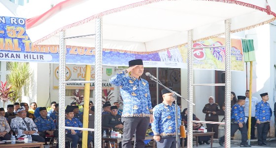 KupasKasus.com, Rohil - Pemerintah Kabupaten Rokan Hilir (Rohil) menggelar upacara peringatan Hari Ulang Tahun (HUT) Korps Pegawai Republik Indonesia (Korpri) ke-52 tahun 2023. Upacara tersebut dipusatkan didepan kantor BPKAD, Bagansiapiapi, Rabu (29/11/2023).