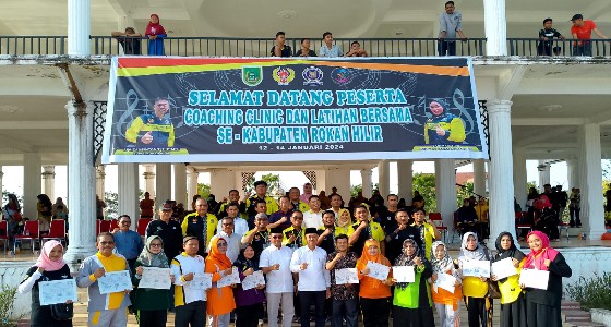 KupasKasus.com, Rohil - Bupati Rokan Hilir, Afrizal Sintong menutup secara resmi coaching clinic latihan bersama Marching Band Se-kabupaten Rokan Hilir pada hari Minggu (14/1/2024) di taman budaya, KM 6 Bagansiapiapi, Kabupaten Rokan Hilir, Riau. Beliau mengungkapkan harapannya bahwa dengan latihan intensif selama clinic ini tidak hanya meningkatkan keterampilan, tetapi juga memupuk semangat untuk mencapai prestasi yang lebih tinggi.