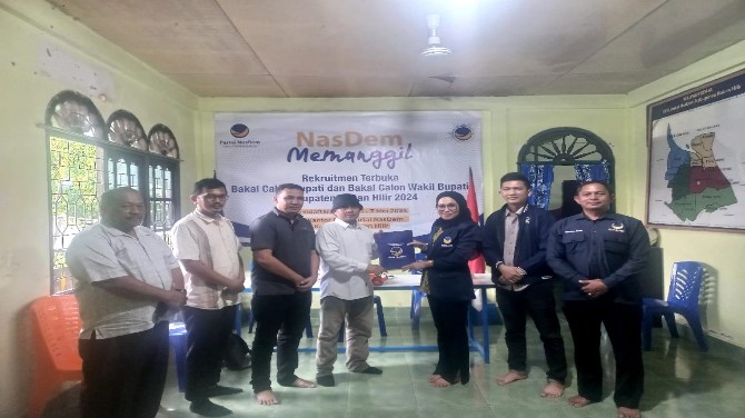 KupasKasus.com, Rohil - Afrizal Sintong, SIP, MS.i, yang merupakan Bupati Rokan Hilir aktif menyerahkan formulir pendaftaran dan berkas persyaratan Bakal Calon Bupati Rokan Hilir untuk Pilkada 2024 ke Sekretariat DPD Partai Nasional Demokrat (NasDem) Rokan Hilir, di Jalan Pahlawan, Bagansiapiapi pada Selasa (07/05/2024).