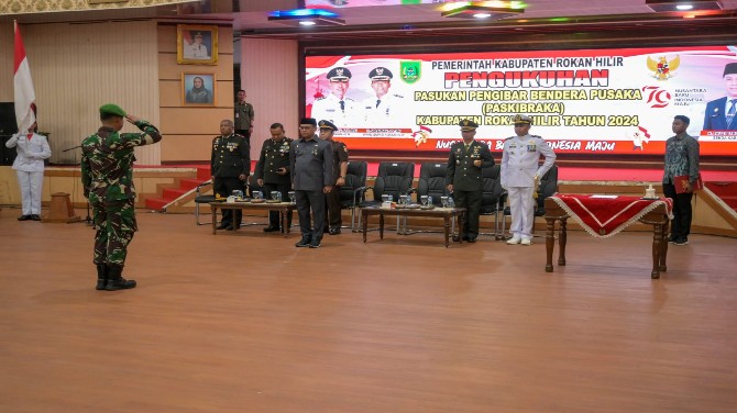 KupasKasus.com, Rohil - Atas nama Pemerintah Daerah Kabupaten Rokan Hilir (Rohil) Sekretaris Daerah Fauzi Efrizal mengukuhkan 31 orang anggota Pasukan Pengibar Bendera Pusaka (Paskibraka) HUT ke-79 Kemerdekaan Republik Indonesia Tingkat Kabupaten Rohil Tahun 2024, Rabu (14/8/2024) malam di Gedung Misran Rais, Jalan Utama, Bagansiapiapi, Rohil, Provinsi Riau.