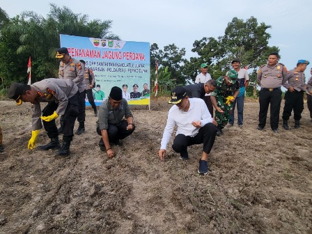 Ketum DPP Santri Tani NU bersama Dir Binmas Polda Riau Lakukan Penanaman Bibit Jagung di Tanjung Pal